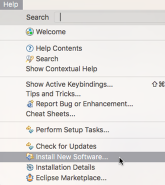 PandionJ requires Eclipse Neon (or a more recent version). After obtaining Eclipse, execute it and click "Install New Software..." on the Help menu. The next step is to provide the Update Site URL.